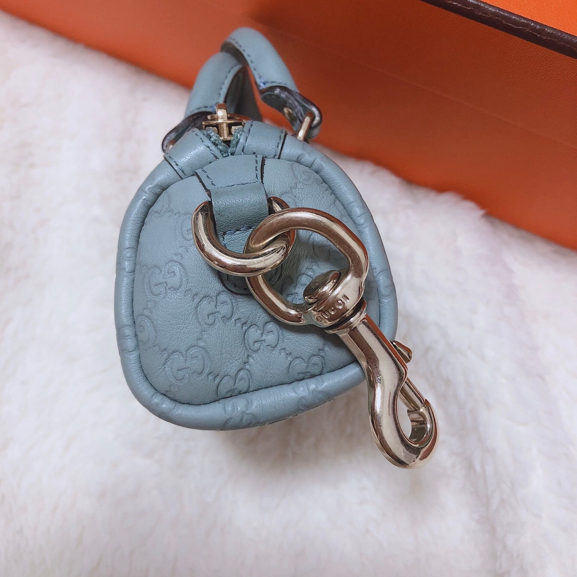 美品 グッチ バッグ チャーム GG キーホルダー レザー 青